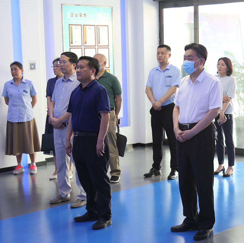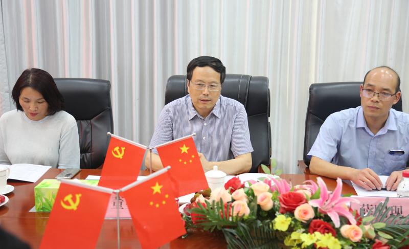 董總(下圖左二)首先對黃榮杰書記的到來表示了熱烈的歡迎,介紹了公司科研項目的發(fā)展,以及公司產(chǎn)品市場銷售情況。
