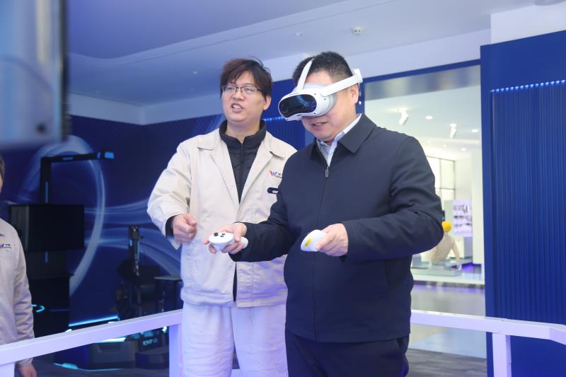 交流期間,學(xué)院一行走進(jìn)萬特電氣展廳,沉浸式體驗(yàn)了高空墜落體感裝置、電力安全VR體感裝置、全向移動式電力巡視VR體驗(yàn)系統(tǒng)、多人動感電力巡線VR體驗(yàn)系統(tǒng)等核心產(chǎn)品。通過虛實(shí)結(jié)合的互動體驗(yàn),直觀感受VR技術(shù)與電力行業(yè)的深度融合,切實(shí)體會到數(shù)字化技術(shù)為電力安全培訓(xùn)、作業(yè)流程優(yōu)化帶來的革命性變化與獨(dú)特價(jià)值。