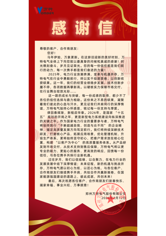 萬特電氣致客戶、合作商朋友們的一封信