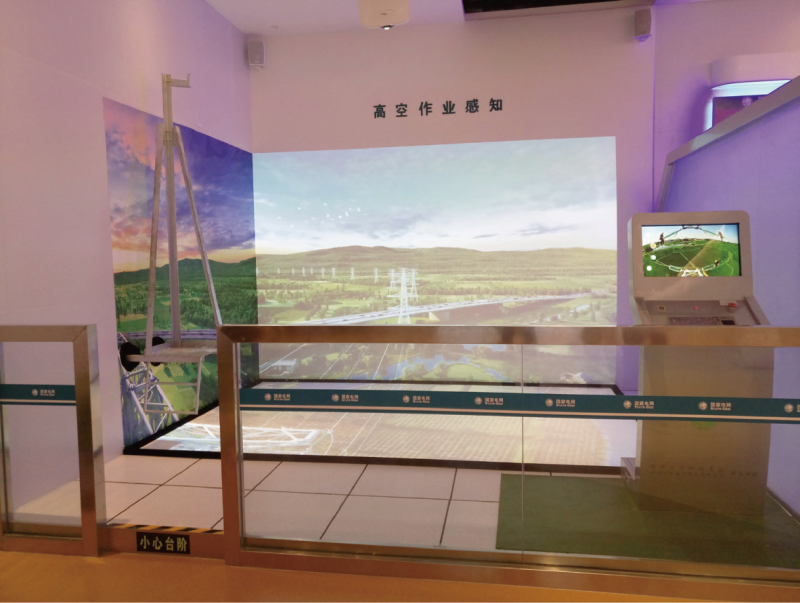 該項(xiàng)目讓學(xué)員親身體驗(yàn)在高空鐵塔上作業(yè)時,由于風(fēng)力的影響人員在鐵塔上擺動的感覺,在室內(nèi)搭建鐵塔的一 角供體驗(yàn)人員站立,高度為0.5米,采用VR 技術(shù)佩戴體驗(yàn)式頭盔打造的具有沉浸式體驗(yàn)感覺的新型體驗(yàn)?zāi)J?。體 驗(yàn)人員仿佛置身于幾十米高的鐵塔上,能夠親身體會高空作業(yè)的眩暈感,身臨其境的體驗(yàn)高空作業(yè)情形,鍛煉 學(xué)員的適應(yīng)能力,提高高空作業(yè)安全防護(hù)技能。