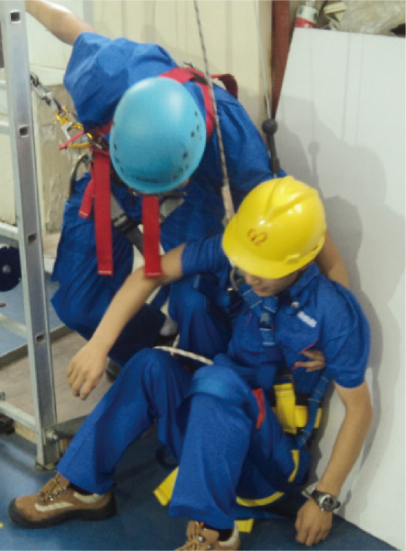 本項(xiàng)目在虛擬環(huán)境中模擬高空作業(yè)人員從高處墜落后發(fā)生安全帶吊掛事故,懸停在半空中等待救援的場(chǎng)景。施救 人員攜帶高空救援用品采用正確的施救方法將受困人員救回地面,訓(xùn)練學(xué)員高空救援的技能。